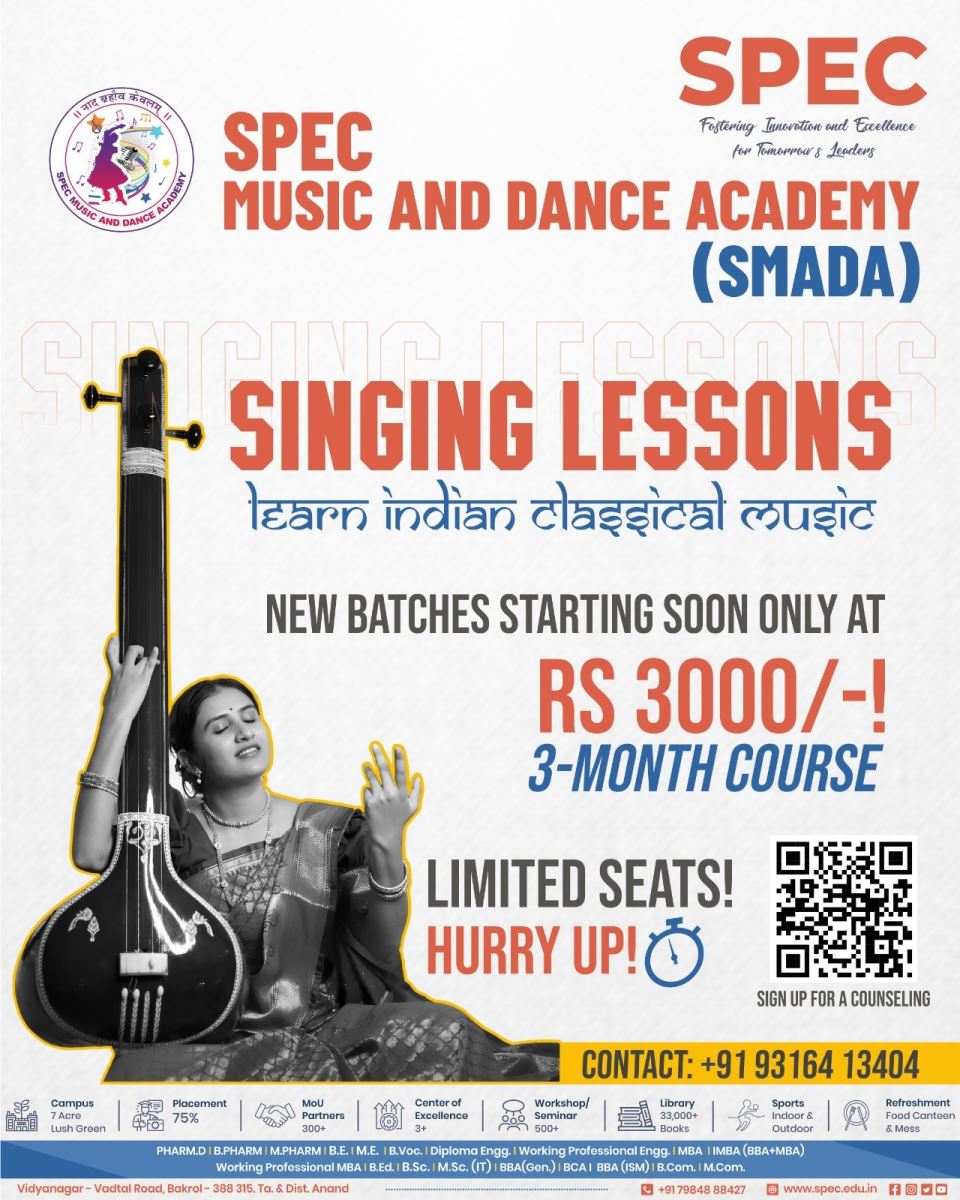 The new batches of Vocal and Classical are starting from February 2026. Register at the earliest: https://forms.gle/UrdprzqSc7q93VueA