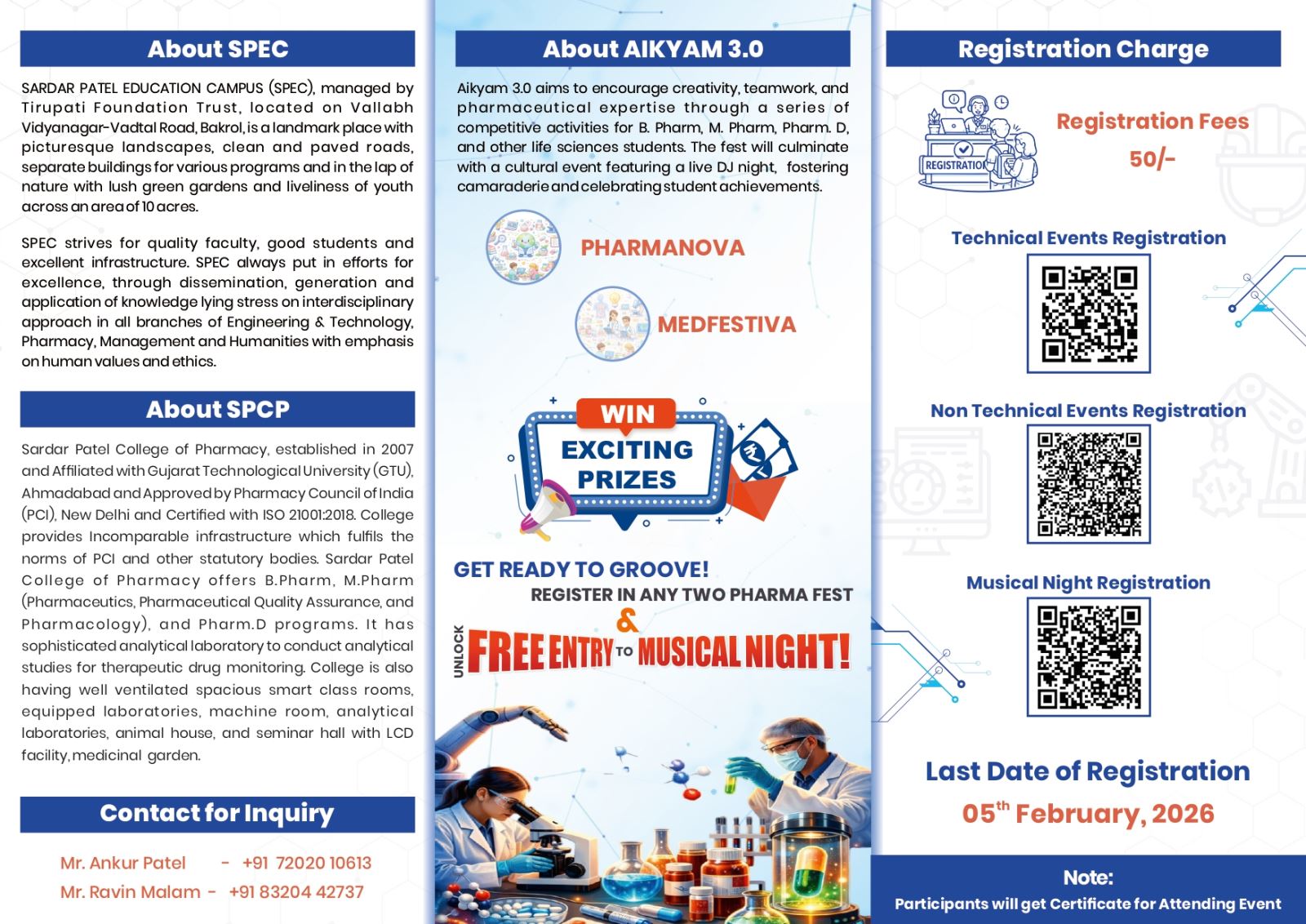 Sardar Patel College of Pharmacy (SPCP), SPEC proudly invites you to a 2-day national-level celebration of pharmaceutical knowledge, creativity, and teamwork.